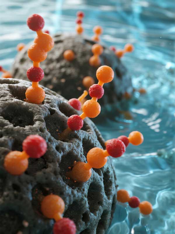 想象一下,活性炭就像一個布滿無數(shù)微小孔洞和溝壑的超級海綿。當含有PFAS的水流經(jīng)活性炭濾床時,水中的PFAS分子會被這些巨大的表面積所產生的范德華力牢牢地“抓住”并固定在孔道內。這個過程就像磁鐵吸附鐵屑一樣,PFAS分子從水中被分離出來,從而實現(xiàn)了水的凈化。